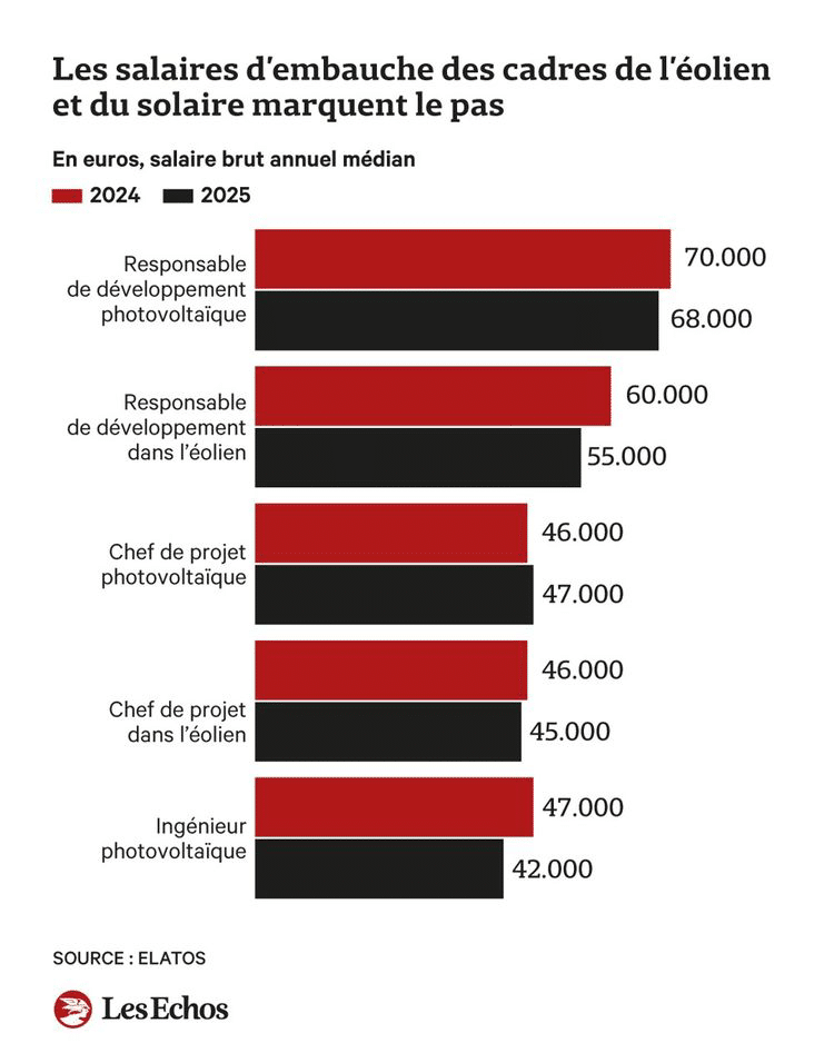 Salaires, recrutements : la fin de l’âge d’or pour les cadres de l’éolien et du solaire – Les Echos et ELATOS